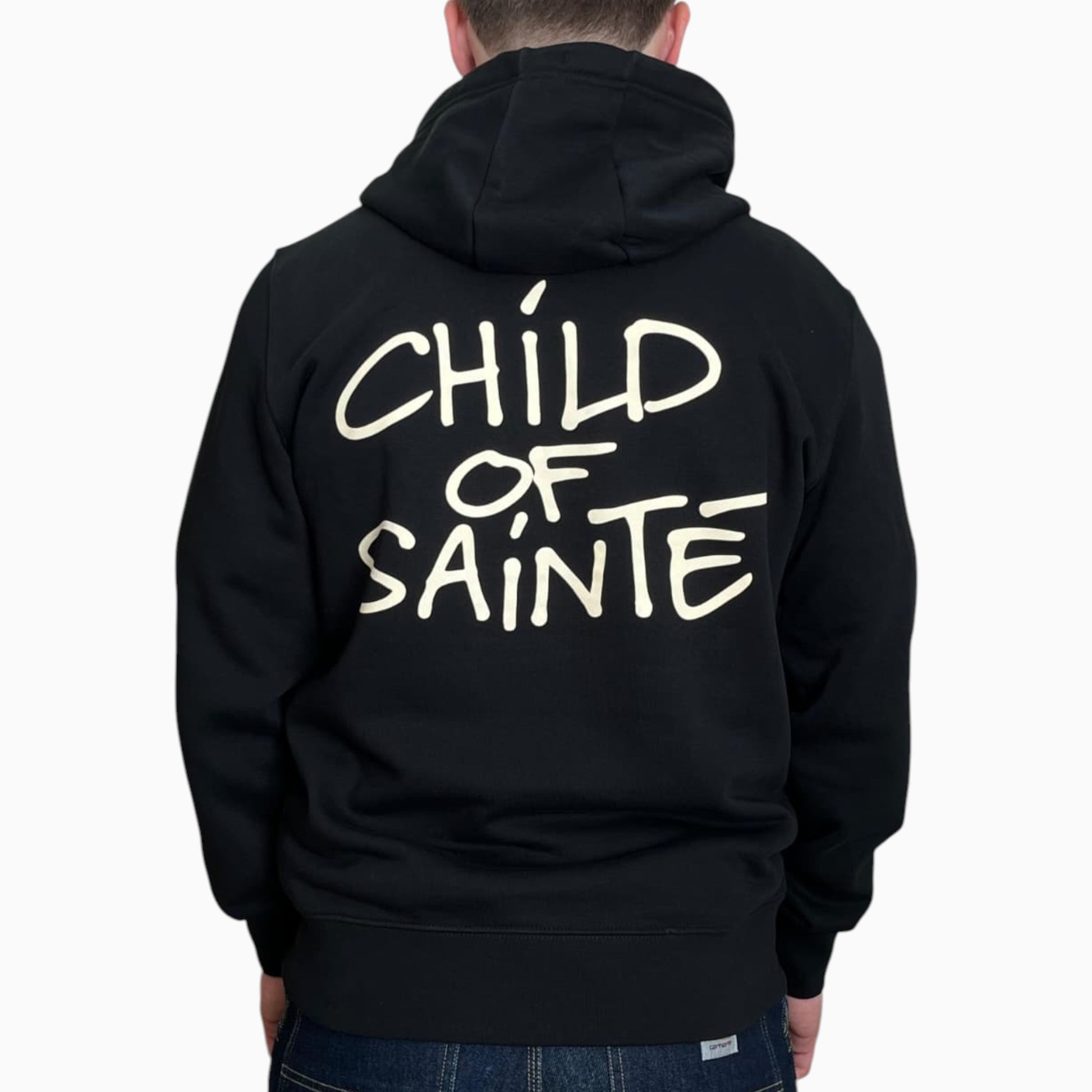 - Logo CHILD OF SAINTÉ contrasté en beige sur base noire.