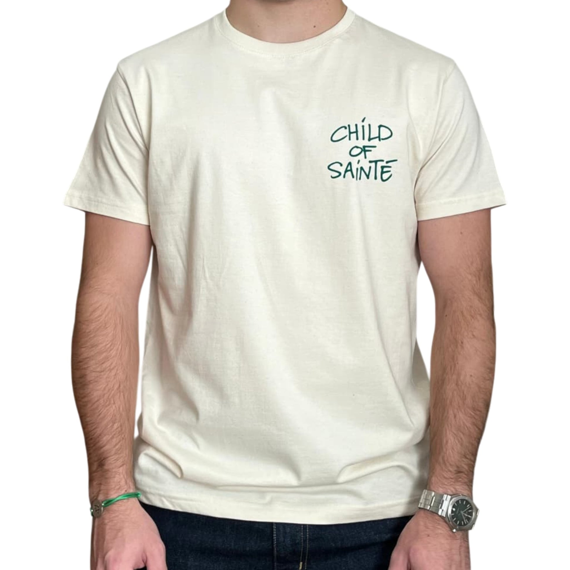 - Visuel CHILD OF SAINTÉ en natural sur base vert.